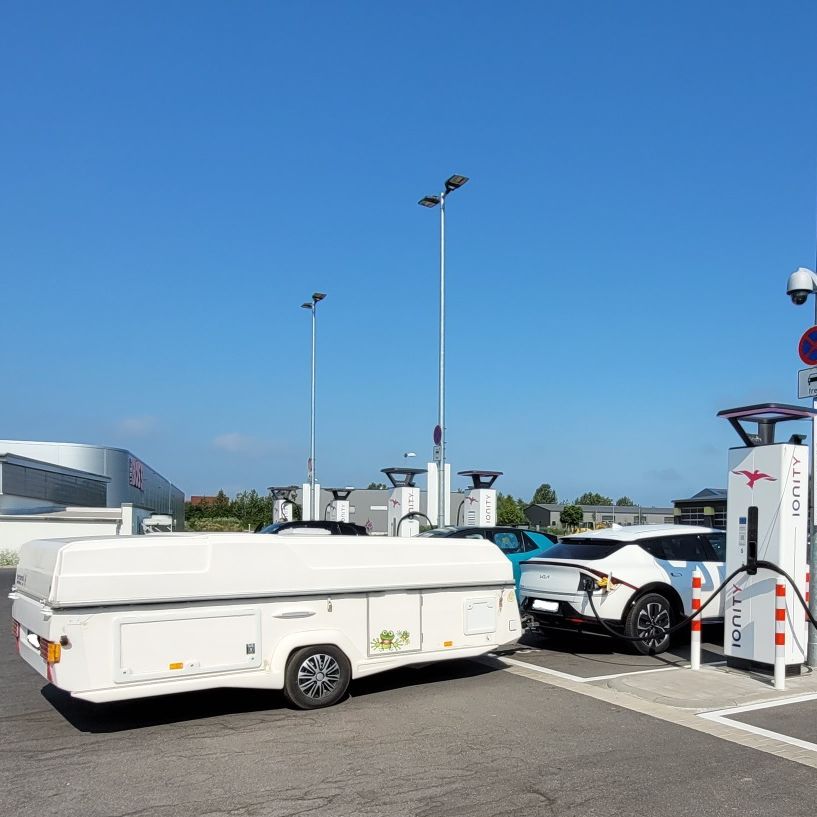 Reisen mit E-Auto und Klapp-Wohnwagen